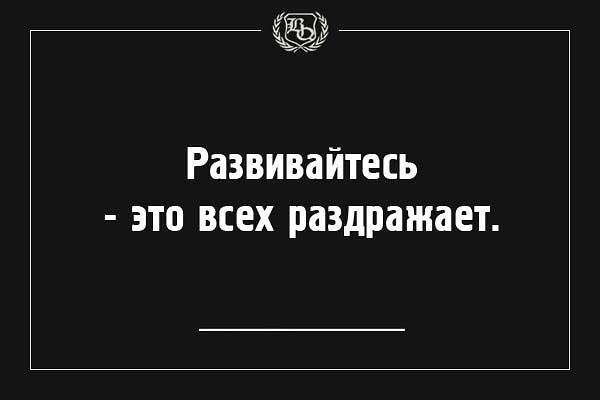 Подумай... ТЕЛЕВИЗОР - чтобы всегда жить в страхе. АЛКОГОЛЬ - чтобы убежать от реальности. РАБОТА - чтобы не было времени думать. ПОТРЕБЛЕНИЕ - чтобы заглушить совесть. ПРИВИВКИ - чтобы разрушать иммунитет. МЯСО - чтобы труп гнил 3 дня в кишечнике. КРЕДИТЫ - чтобы быть нищим в рабстве. ТАБЛЕТКИ - чтобы загонять болезнь ещё глубже. ПЕНСИЯ - чтобы дети не заботились о родителях. РЕЛИГИИ - чтобы быть "вечной жертвой". ЗРЕЛИЩА - чтобы чувствовать себя в стаде. ТАБАК - чтобы оплачивать своё уничтожение. ШКОЛА - чтобы потом стать винтиком в Системе.