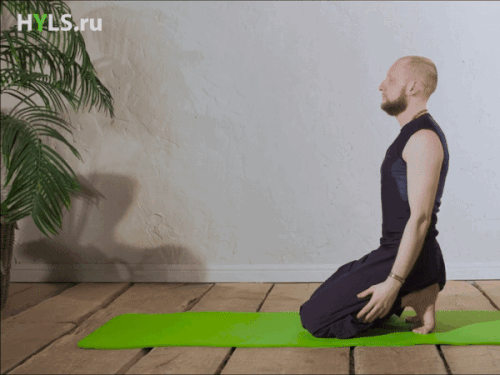 Встаньте на колени. Поднимите руки над головой, прижмите их к ушам и соедините ладони. На выдохе наклонитесь вперёд и коснитесь пола руками, кончиком носа и лбом. Ягодицы не отрываются от пяток. Сделав полный выдох, задержите дыхание на 8 секунд. Затем поднимитесь на вдохе. Выполните 8 раз.