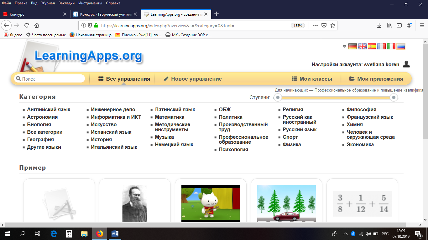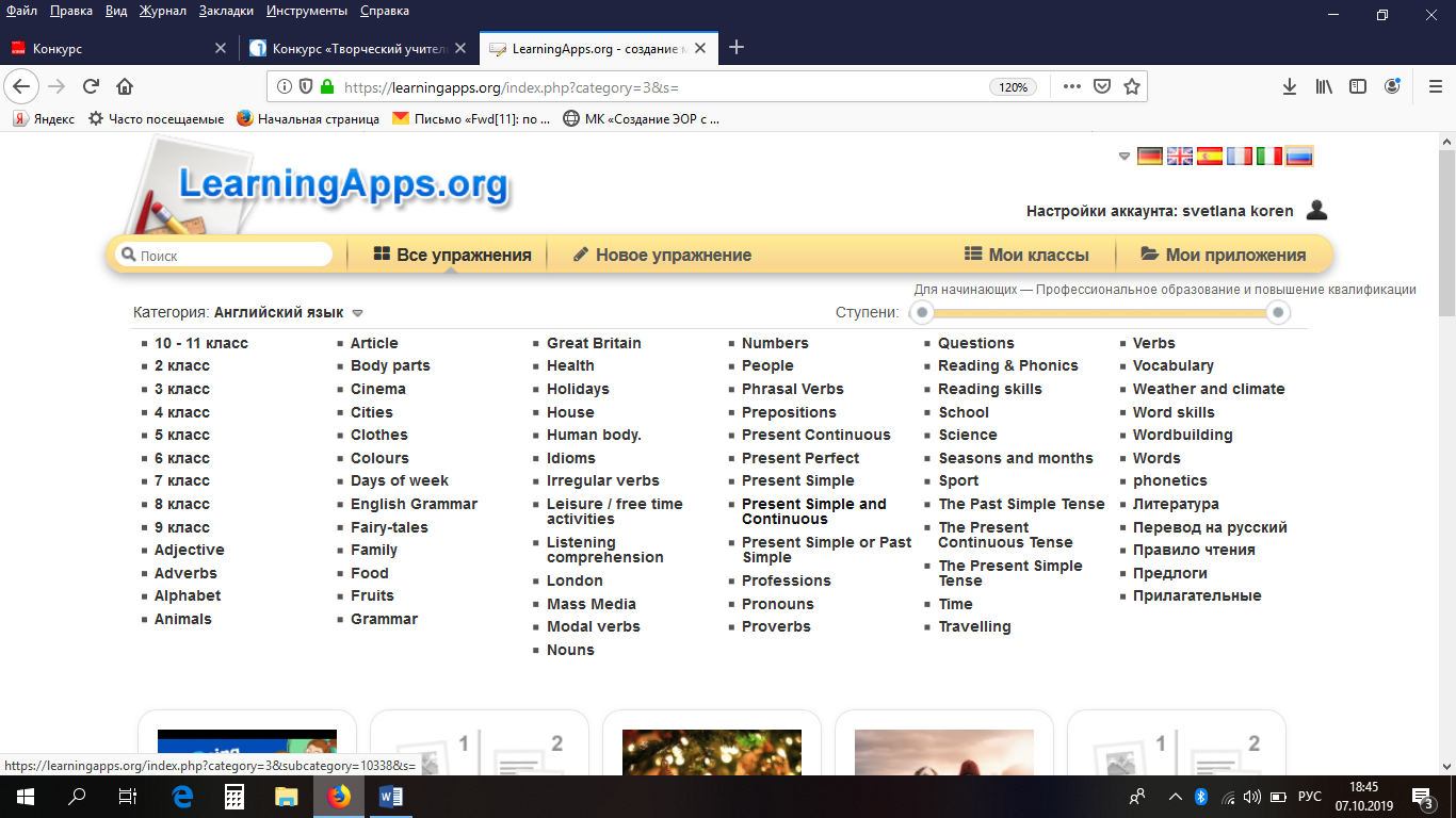 - http://learningapps.org/user/svetlana koren (акккаунт учителя английского языка Корневой С.В.)