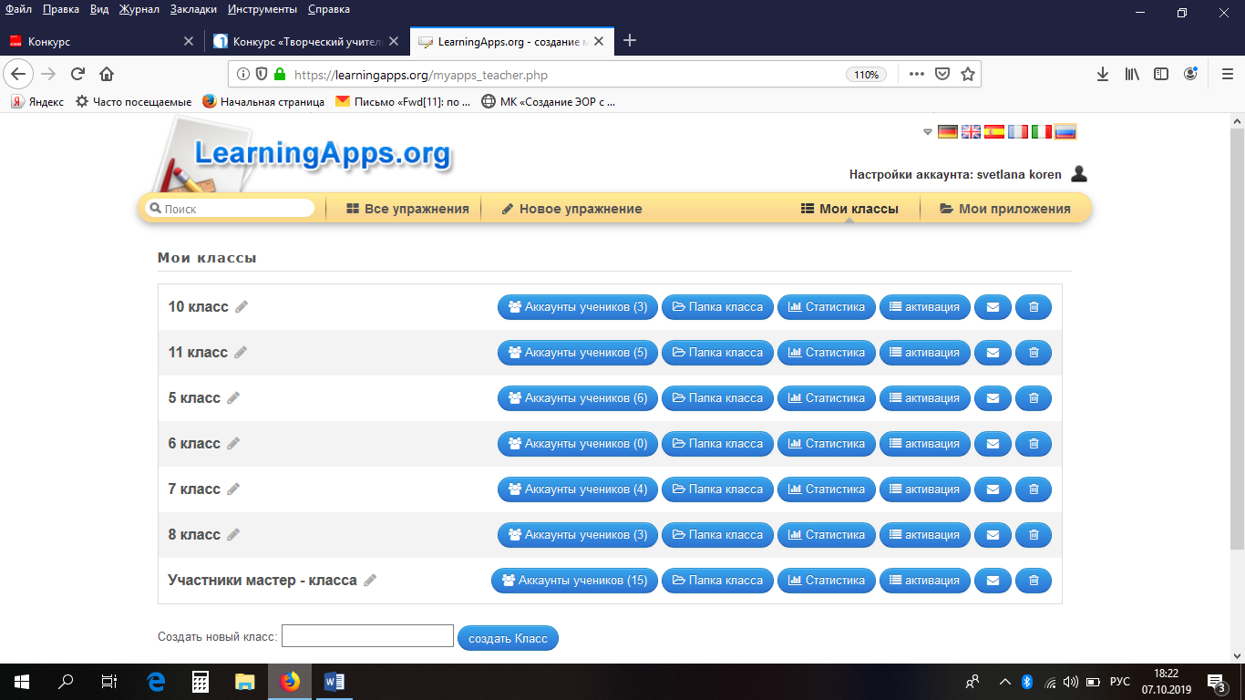 Можно создавать виртуальные классы, в которых можно регистрировать учащихся. При создании списка класса сервис автоматически генерирует логины и пароли для учащихся. Я, как учитель, раздаю логины и пароли авторизованным учащимся, и они входят в свою классную комнату и выполняют задания, предложенные ему учителем. Учащиеся также имеют возможность создавать собственные приложения. Которые автоматически после сохранения отправляются на проверку учителю. Вы видите, что в каждом классе есть аккаунты, папка класса, статистика. Учащиеся могут отправлять личные сообщения учителю.