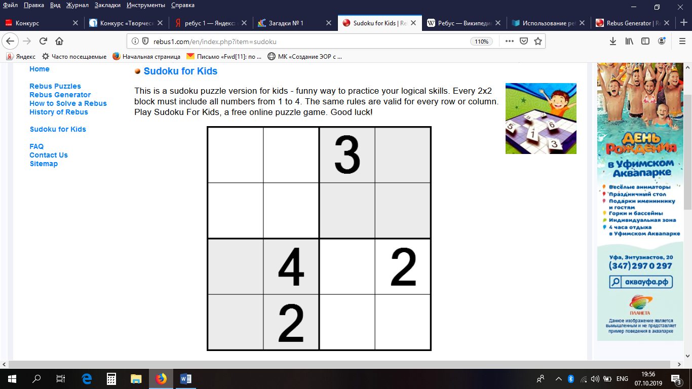 Внизу можно выбрать тип ребуса (стандартный или ребус для детей);